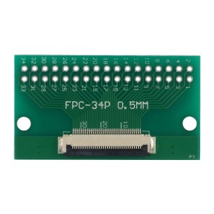 Adapter 34-pinowego złącza FPC/FFC o rastrze 0,5mm na otwory DIP raster 2,54mm.