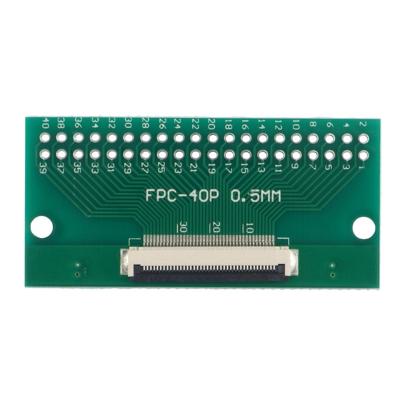 Adapter 40-pinowego złącza FPC/FFC o rastrze 0,5mm na otwory DIP raster 2,54mm. Moduł posiada wlutowane złącze FPC.