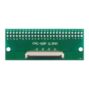 Adapter 50-pinowego złącza FPC/FFC o rastrze 0,5mm na otwory DIP raster 2,54mm.
